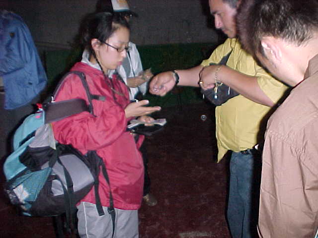 国境からすぐの角を左に曲がったところに、その闇両替所があった。一見すると、ただの民家である。看板も何も無い。電灯に照らされた家の玄関先に案内されると、お金の入っているポーチと電卓を持った二人の男が待っており、私達はここで彼らと両替をすることにした。