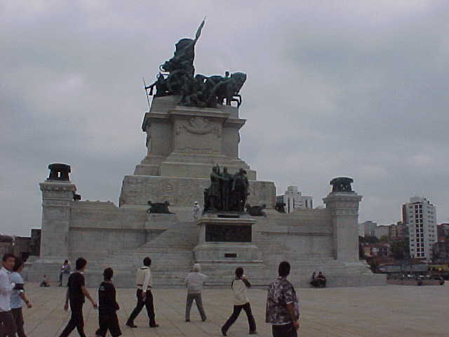 このモニュメントは、馬車に乗っているドン・ペドロ一世と、その周りを囲んでいる何人もの人々の像から構成されている。その中でも注目すべき点は、ジョン・ボニファシオと、馬車の最後尾に位置するインディオである。ジョン・ボニファシオは、未整備であったブラジル軍を編成し、側近1の地位にいた人物である。彼の像は、モニュメントとは違った台にあり、独立の第一功労者として別格に飾られていた。一方、インディオは、他の像と少し離れたところで仲間はずれのような位置に置かれてあった。これは、建国以降も彼らの待遇が向上せず、依然として独立前と同じであったことを表している。