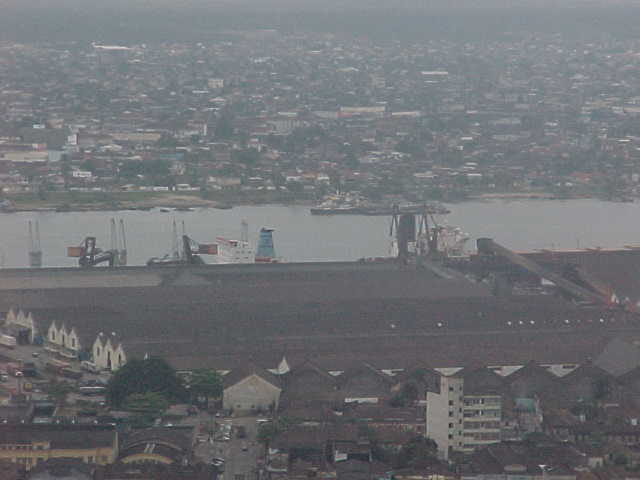 屋上に出ると、そこからサントスの町が一望できた。ここで、米田さんからこの町の外観について説明してもらった。町の東側に港湾、西側にはビーチが広がっている。東側にある港湾では、扱う品物が地区ごとに決まっていて、自動車は山よりの所、砂糖は海よりの所から積み出されていく。ちなみに、私達がサンパウロからサントスに来た時は東側の道路を通ってきた。また、港湾とビーチの接するところがリゾートシティーとして知られている、グァルジャである。