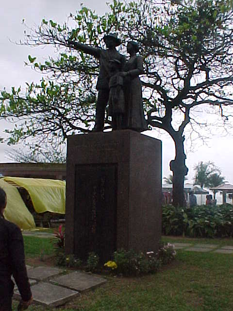 道路が込み合っていたため長居はできず、バスがビーチを巡回している間に、私達は日本移民上陸記念碑を視察した。この記念碑は、1998年に移民90周年を記念して、移民の到着地であるここサントスに、当時の総理大臣橋本龍太郎によって建立された。そして、1999年に神戸でも同じく日系移民の乗船記念碑が建立された。