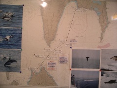 廊下の掲示板に、稚内から大泊まで戦前の稚泊連絡船がとった航路と、今の東日本フェリーがとる航路を比較対照した2枚の海図があった。それによると、稚内から大泊までの最短距離の途中に二丈岩/カーメンオパスノスチという岩礁があり、昔はその周辺で航路を間違って座礁する船が絶えなかったので、鉄道連絡船は二丈岩を遠く迂回する航路を取って、片道8〜9時間かかっていた。しかし現在は、レーダー技術の発展などにより最短距離を航海することが可能になったため、5時間半程で行くことができる。