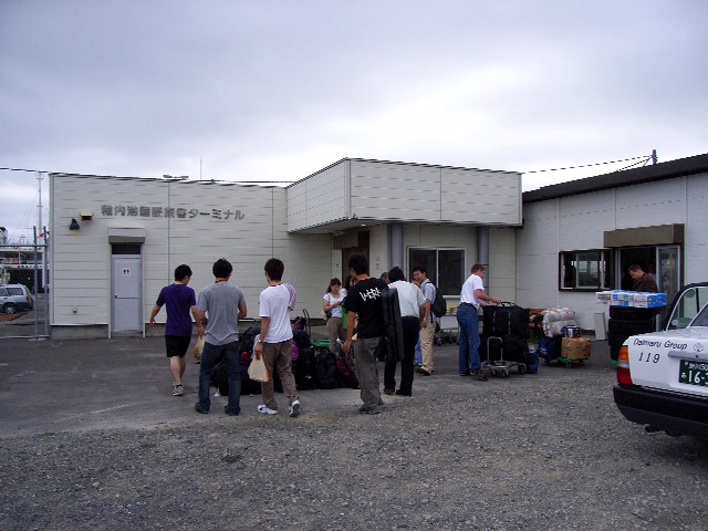 午前8時半、「おもて」を出発。親切にも民宿の方々が車を用意してくださり、国際ターミナルまで荷物とゼミ生数名が積み込まれた。国際ターミナルは利尻・礼文行きターミナルと800mくらい離れており、そこまで重い荷物を引きずって歩いてゆくのは大変なので、車を用意してくださったのは本当にありがたかった。