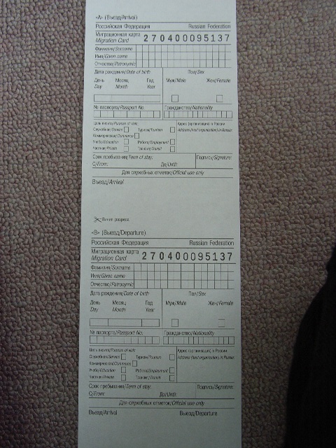 何も税関申告するものがなかったゼミ生は、パスポートチェックを受けた後、出入国カードを係員に渡し、その裏に「コルサコフ」と書かれたスタンプを押された。だが、私のものは何故か上手く押せなかったらしく4回も押され、あっという間にカードがスタンプだらけになってしまった。この出入国カードのときも、係員がどのような場所を見ているのかがよくわからないような作りになっていた。