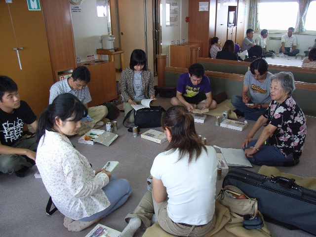 山口さんへのインタビューを終えてから、ゼミ生は再び甲板に出たり、部屋でゆっくり休んだり、思い思いの時間を過ごした。船は、亜庭/アニワ湾へと深く進んでいる。地図によるとフェリーから能登呂半島/ユジノカミショビ山脈が見えるはずだったが、この日は霧が濃く何も見えなかった。