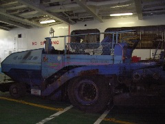 外にでると、進行方向に向かって右側には高い柵が張り巡らされていた。手続き上はもう「外国」である。柵は、密出入国を防止するためのものであろう。そして向かって左側には、おそらく我々と同じフェリーでこれから大泊/コルサコフへ向かうのであろう中古の大型トラックや重機が何台か並べられていた。これらのトラックは北海道を陸送された後、フェリーで運ばれてサハリンプロジェクトの関係でも使われるのではないかと思われた。
