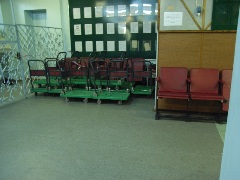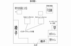 椅子は例外なく全て真っ赤で、クッションも何もない硬いプラスチック製のものであった。私たちはずっと税関のための列に並んでいたので、殆ど坐ることはなかった。