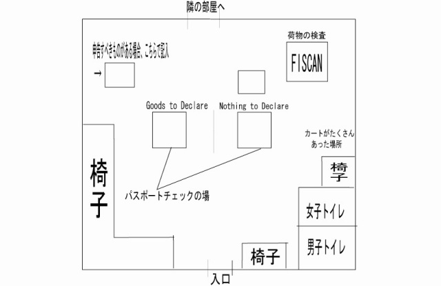 次に、FISCANと書かれた中国製のX線検査機械に手荷物を含めた全ての荷物を通した。私はキャリーケースの荷物があまりに重かったのでなかなか載せられず、踏ん張っていたら係員の方が載せてくれて助かった。入国審査はこれで全部である。FISCANの代替機械しか置いていない部屋を通り抜けて、待ち合わせ場所のような部屋に出た。