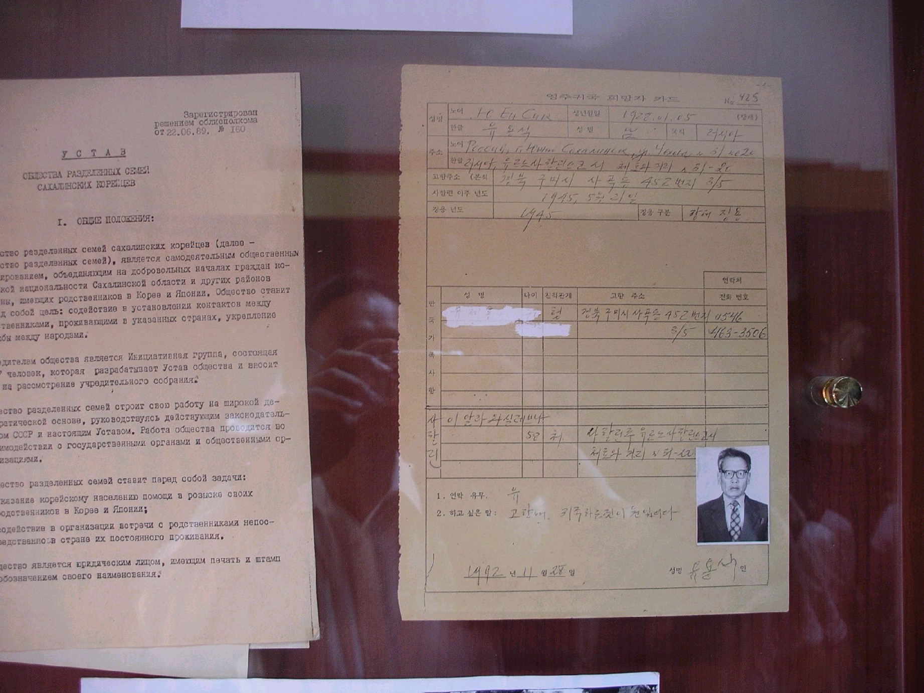 隣の部屋には、韓国の友好都市である安山市が寄付した部屋があった。赤を基調とした独特の雰囲気がある部屋で、民族衣装や、日本統治時代の朝鮮半島出身者が小学校で学んでいた頃の通信簿、移住のルートを示した地図などが所狭しと展示してあった。このような部屋があるのは、やはり在樺朝鮮半島出身者の存在が大きいからであろう。