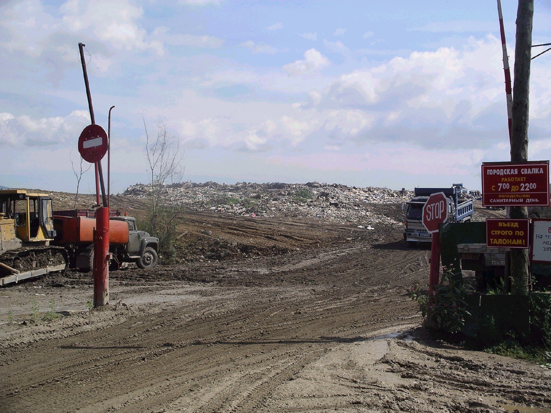頻繁にごみをいっぱい載せたダンプカーが入り、空車が出ていた。歩いてごみを捨てに来ている人、もしくは何かつかえるものを探しに来ている人もいた。昨日北海道サハリン事務所で聞いたとおり、豊原/ユジノサハリンスクのごみ処理のやり方はひどいものだ。毎日回収されるのだが、夏になると自然発火し煙が上がることもあるという。