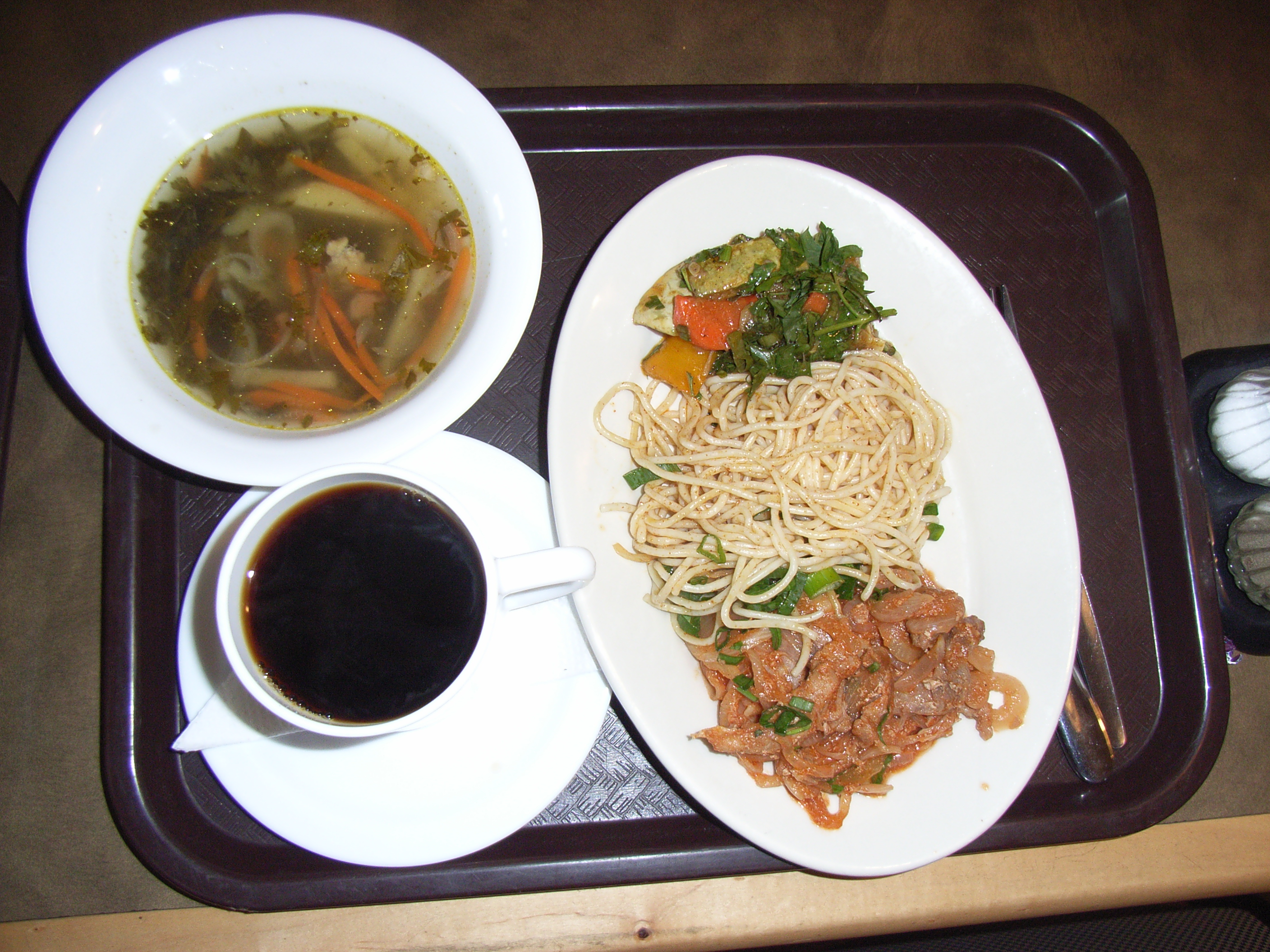 こうして再び一階で全員合流でき、気を取り直して「パシフィックカフェー」という名のカフェテリアに入った。この店は英語が少し通じ、メニューも英語で書いてあってありがたかった。客の中には、樺太/サハリンでは珍しく、黒人のビジネスマンもいた。米国人であろうか。サヒンセンターが外資系企業オフィスの集積地として機能していることを実感した。