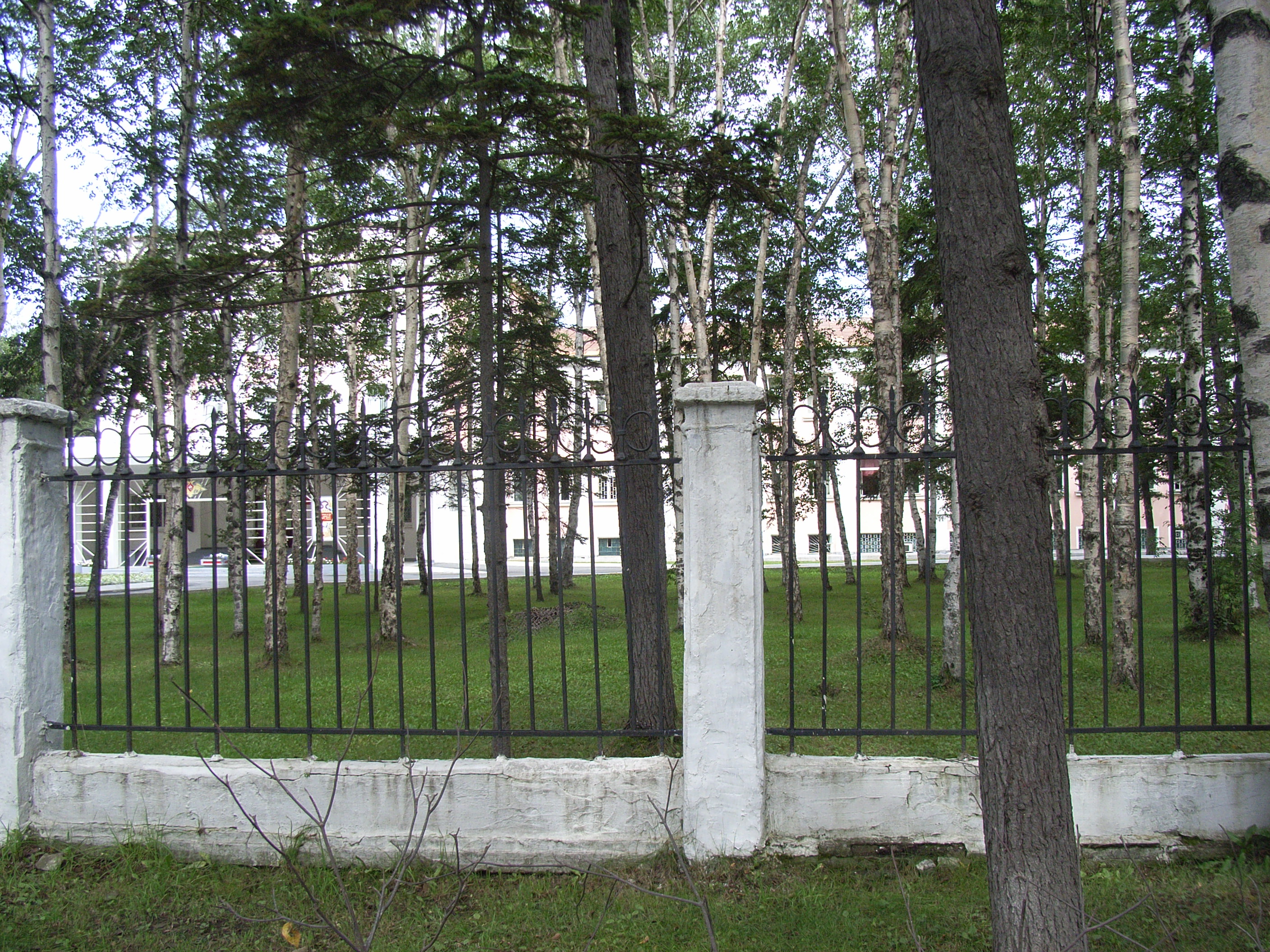 この地区では、おそらく、戦後にソ連の実効支配が始まってもかつての社宅群がそのまま利用できる状態にあったので、旧社宅がそのまま接収されて戦後も住宅として利用され、時とともに老朽化して現在に至ったのであろう。しかし、住宅のすぐ反対側では、多目的のオフィスビルの建設が始まっていた。老朽化した木造住宅であるから、取り壊して更地にするのは容易である。今後は、コンクリートの社会主義住宅が広がる市の中心部よりも、こちらのほうが新しい市場経済の都市空間として発展してゆく可能性があるようにも思われた。