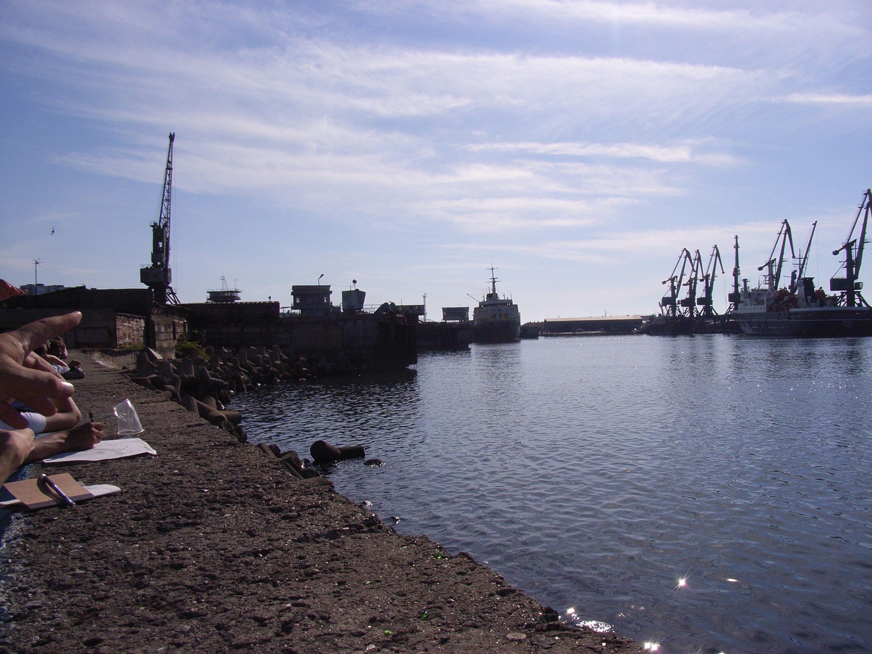 ミール広場から、港を眺めた。向こうのほうに海水浴場が見えた。この港は日本時代に埋め立てて作られたものを拡張したものだそうだ。巨大なクレーンが動き、大きな船が停泊していた。ここは、樺太/サハリンの、ロシア本土へにむけた玄関口であり、港は活気が感じられた。