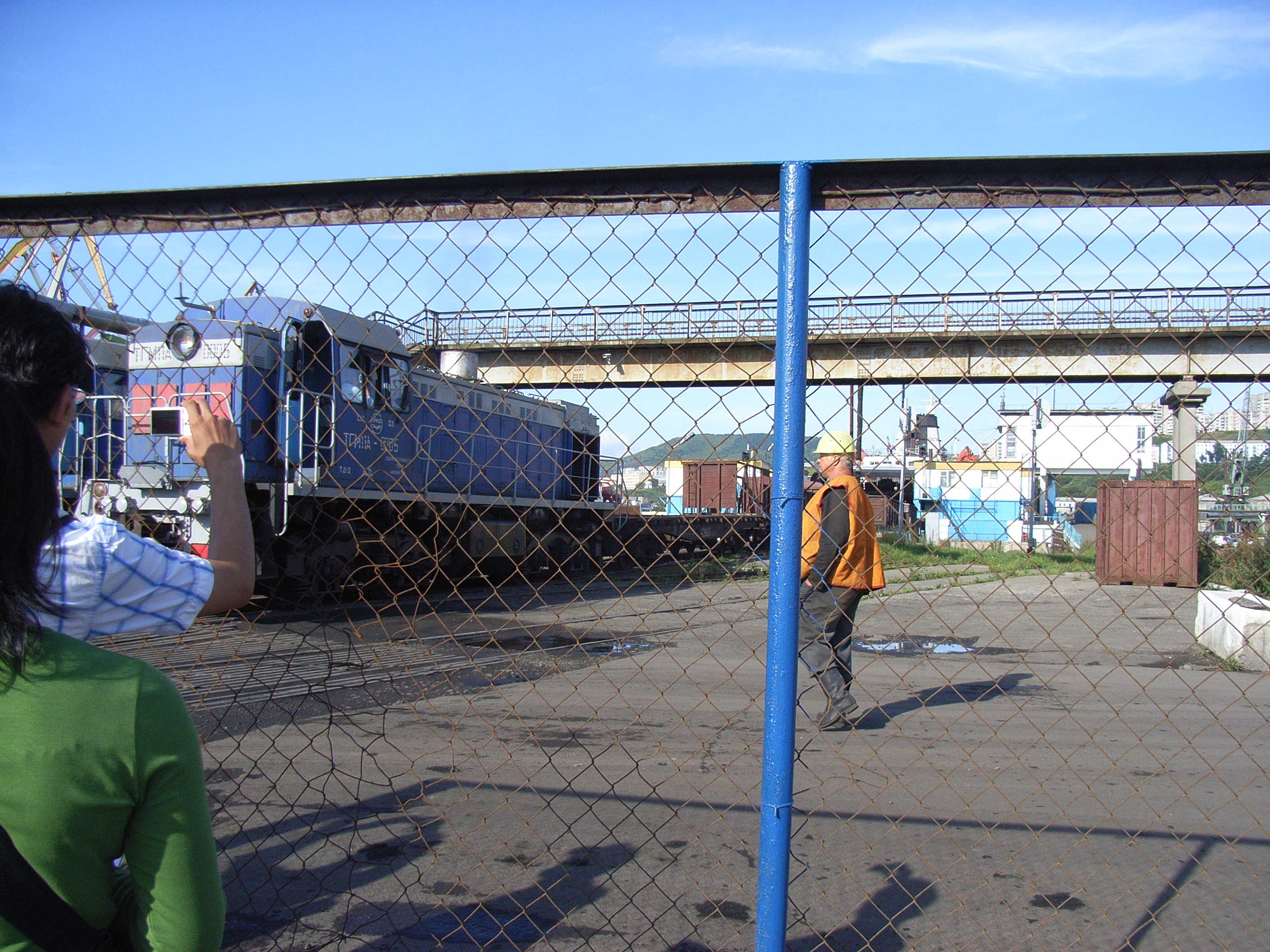 再び歩き続け、すこし道を海のほうに折れて、樺太/サハリンとロシア本土とを結ぶ連絡船のターミナルと軌間交換所を見学した。