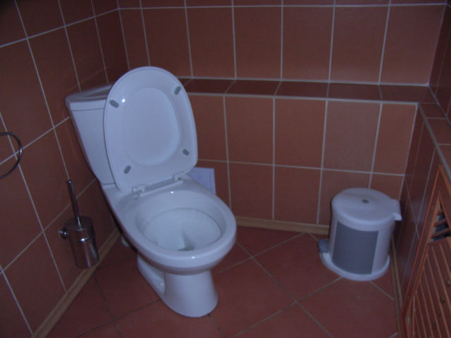 基本構造は日本でいう「洋式便所」である。ほとんどの場合、掃除が行き届いており、水洗になっている。しかし、日本との大きな違いは便座がないことである。便座が本来あるべきであろう部分、つまり便器の淵に座ることは不可能ではないのだが、いかにも不衛生な感じがするので、ゼミ生は皆、立つとも座るとも言えない非常に微妙な体勢を取ることを強いられた。この微妙さは和式便所のそれを上回る。