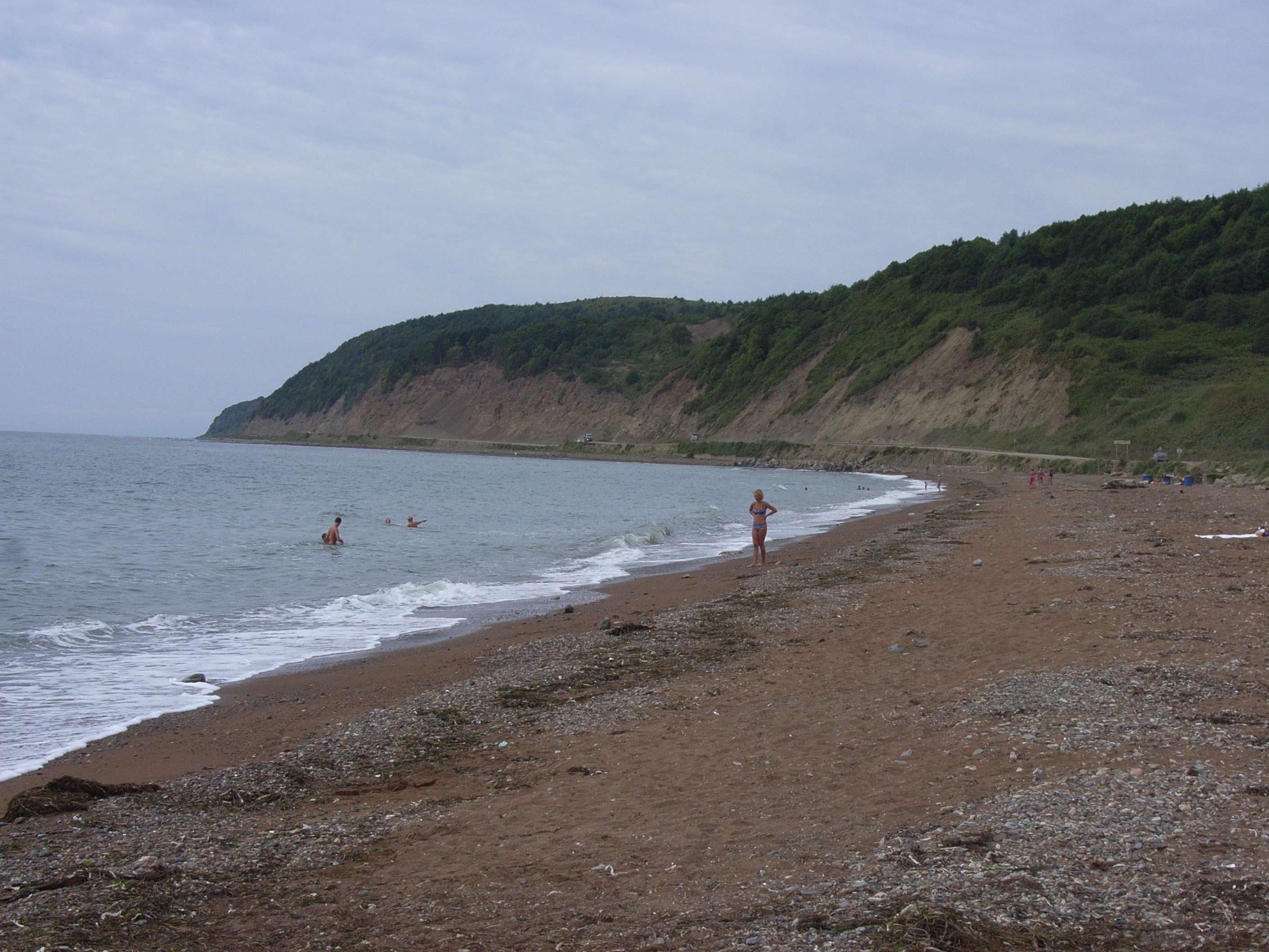 私たちは、午後1時頃、女麗/プリゴロドノエの丘を出発した。周囲の浜辺では幾人かのロシア人が海水浴を楽しんでいる。おそらく気温は25度程度しかないので、私たちの感覚では寒すぎるように思うのだが、やはりロシア人にとってはこれでも夏真っ盛りなのであろう。街中でも肌の露出度の高い服を着ている人が多い。