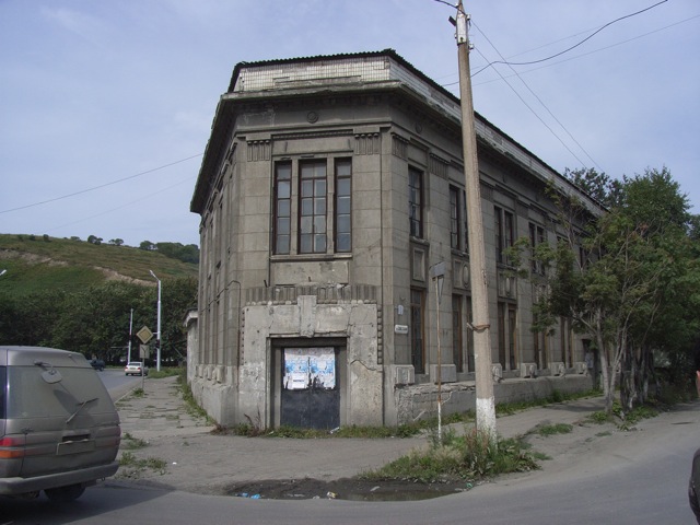 ソ連時代は国立銀行の支店として利用されていたようだが、現在は何にも使われていない。それでも建っているのは、大泊/コルサコフの都市経済が十分成長せず、ここに土地の需要がないからである。いわば「消極的保存」という状態になっている。