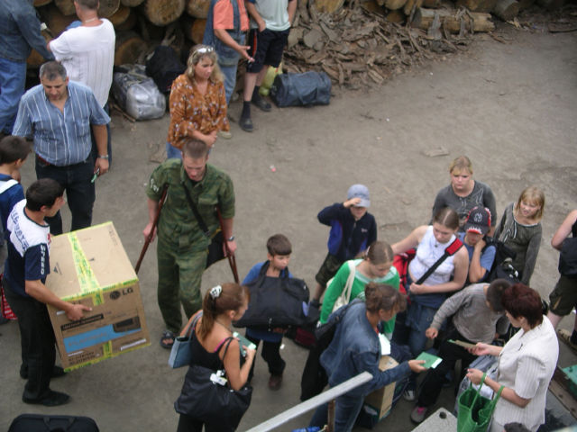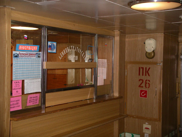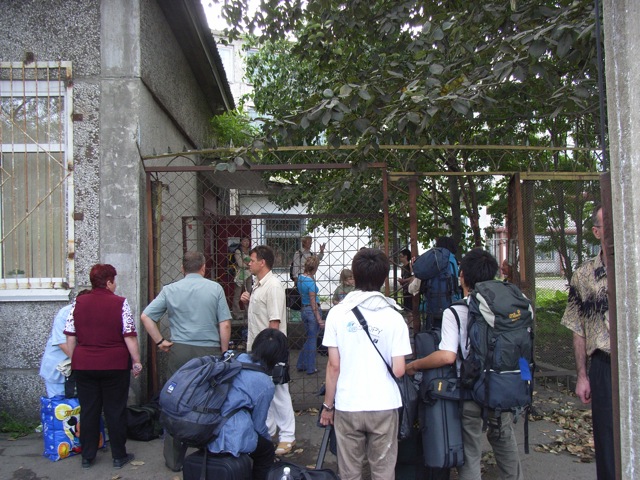 建物内に入ると、隣の部屋との間のドアのあたりに10人ほどのロシア人が群がっていた。その前で乗船券の確認が行われているらしく、それを待っているのである。