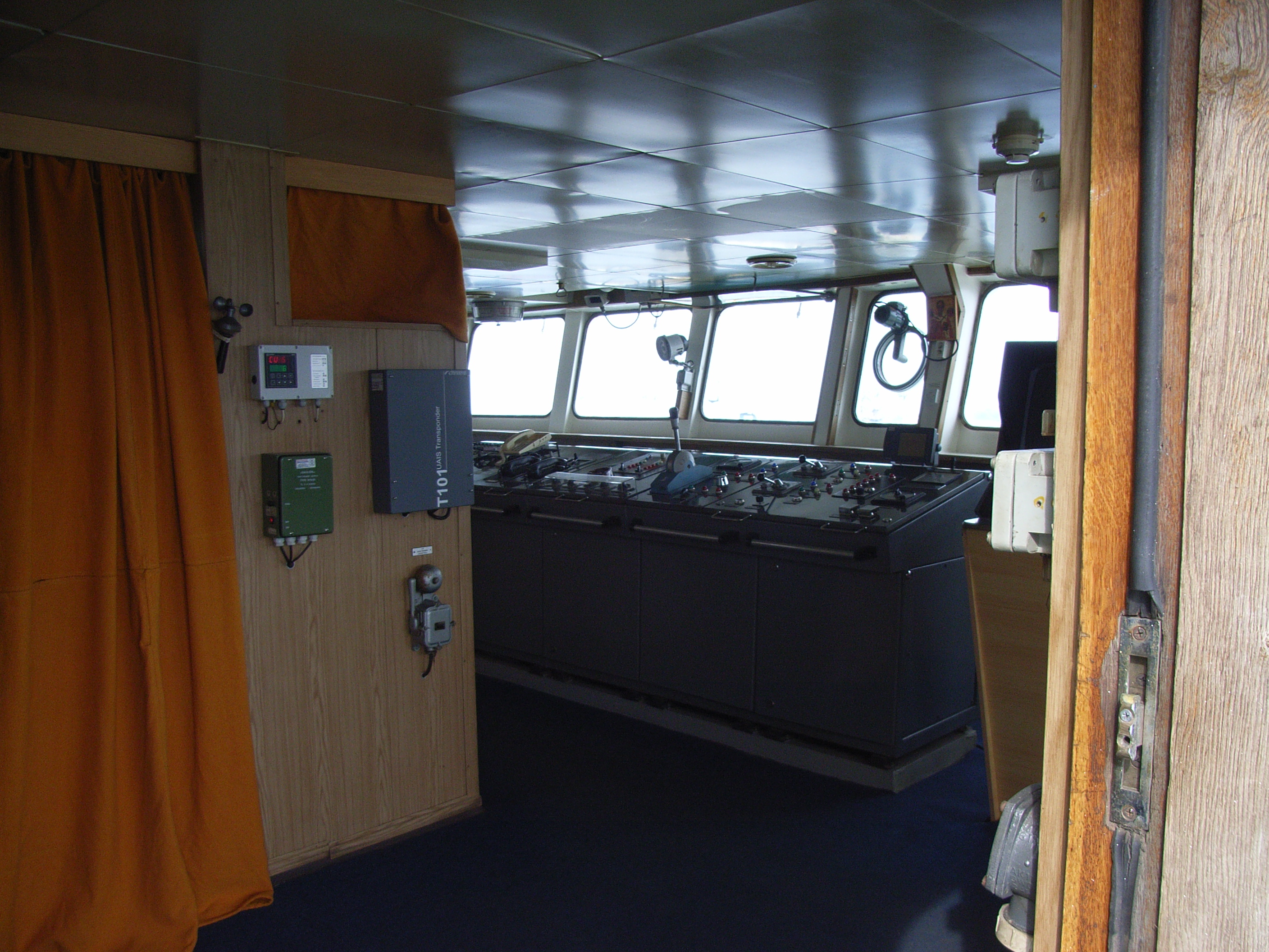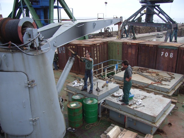 荷物を置いて落ち着いた私たちは、部屋を出て甲板へ移動し、船全体の簡単な構造を把握した。この船は3〜6階が客室になっており、そのうち、3・4階が3等客室に、2等客室はなぜか存在せず、5階が1等客室、6階が特等客室になっている。そしてそのさらに上部に操縦室がある。また4階の一部は甲板になっており、そこにはいくつもコンテナが積まれている。この船は、民間の旅客と貨物を一括して取り扱う、千島/クリルの人々にとっての生命線なのである。