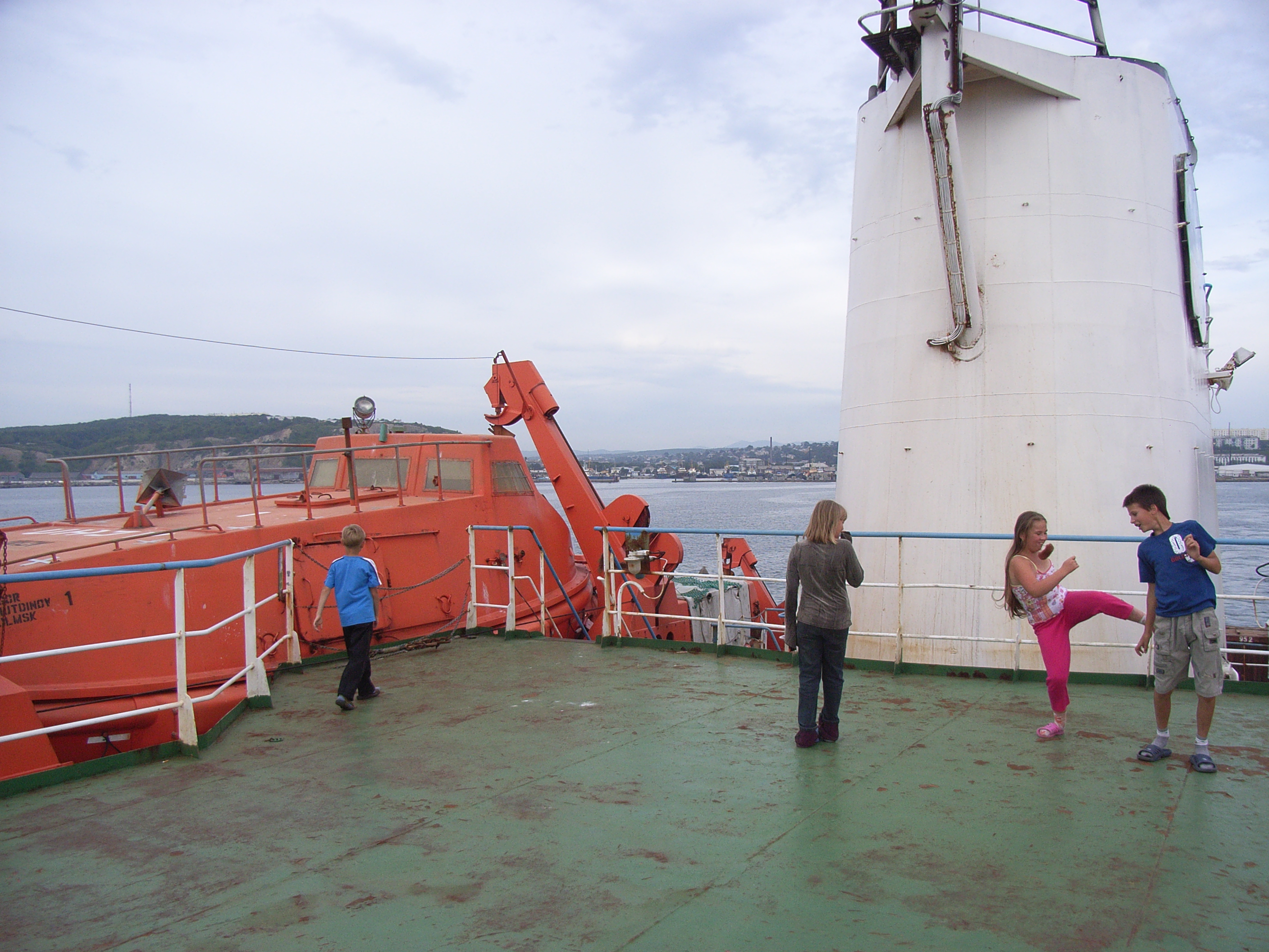 その後、しばらくして甲板にでてみると、10歳前後と思われるロシア人の子供3人が駆け回り出した。華奢な男の子が体格のしっかりした女の子に蹴られているではないか。私は自分がこのくらいの年だった頃のことをとっさに頭の中でオーバーラップさせた。この年頃では女子の方が男子より成長が早いというのはよく聞く話であるが、このような光景も万国共通なのだろうか。