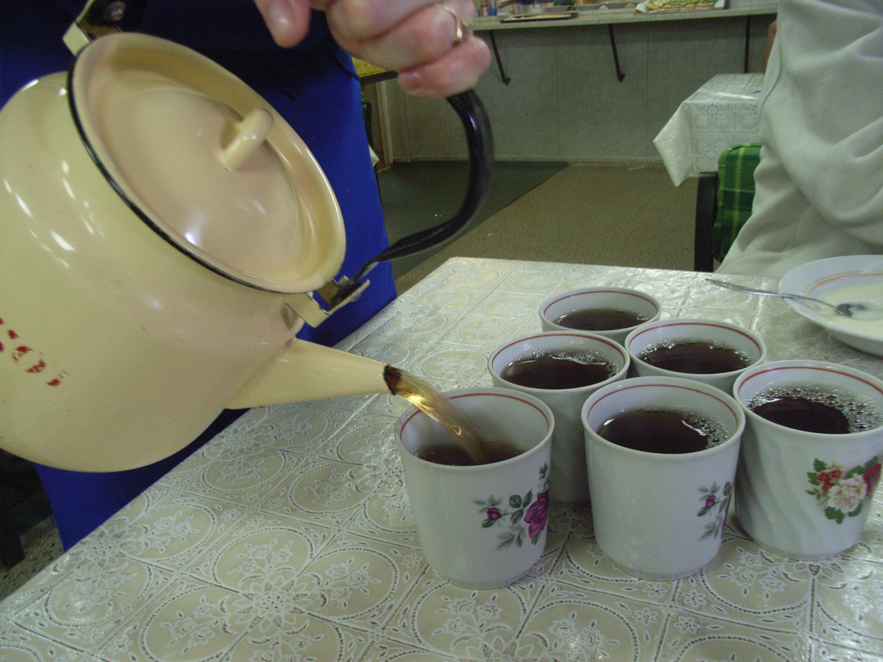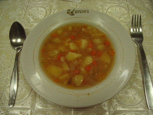 さて、実際のメニューは、ジャガイモ、人参、豆、肉の入ったスープと、穀物のリゾットとミートボール、パン、ロシアンティーだった。肉が中心のメニューで食べごたえがあり、私は大満足だった。