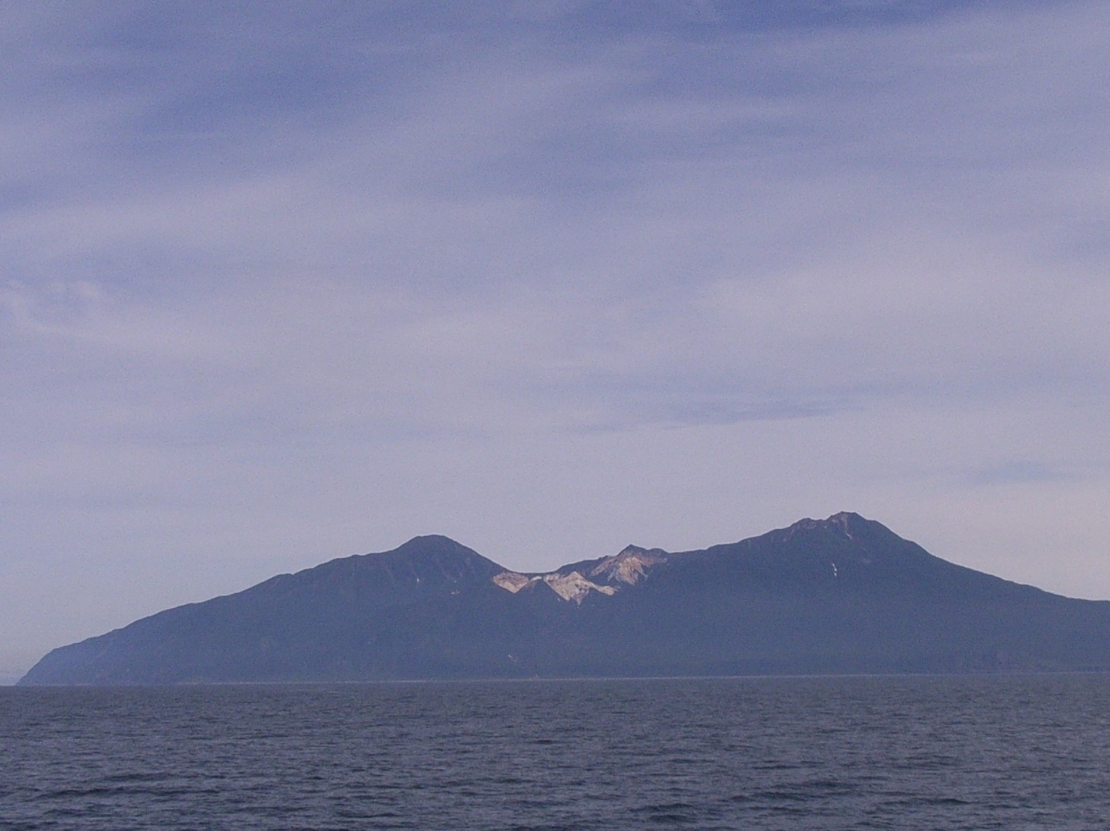 右の奥には、国後/クナシル島の爺爺/チャチャ岳と、ルルイ岳の山頂も、うっすらと水平線上に顔をのぞかせていた。