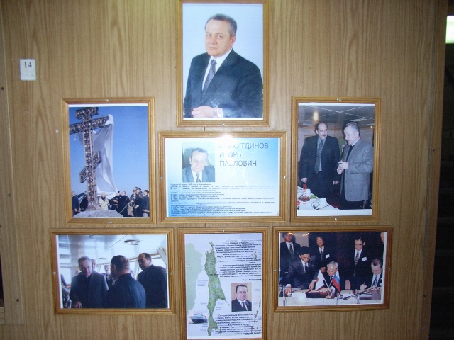 食事の時間になったので、四階の食堂へと向かった。そのすぐ外には、この船の名前のもととなった、イゴール・ファルフトディノフ前サハリン州知事の功績を称える写真や文書が貼ってあった。前知事は、サハリンの大陸棚の開発、ロシア正教会の建設、日本との経済的な交流などの功績があった。成様は、この前州知事と知り合いだったらしく、彼がユジノサハリンスク市長だった時、その来日に際して通訳として函館へ同行したという。改めて、成様の人脈の豊富さに驚かされた。