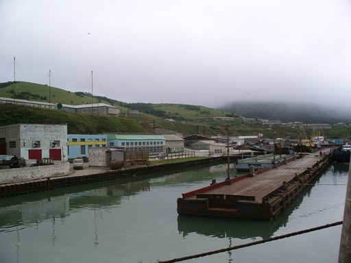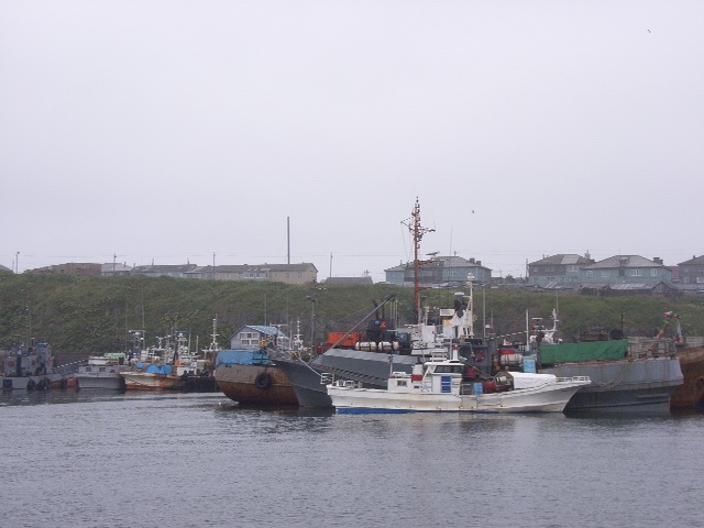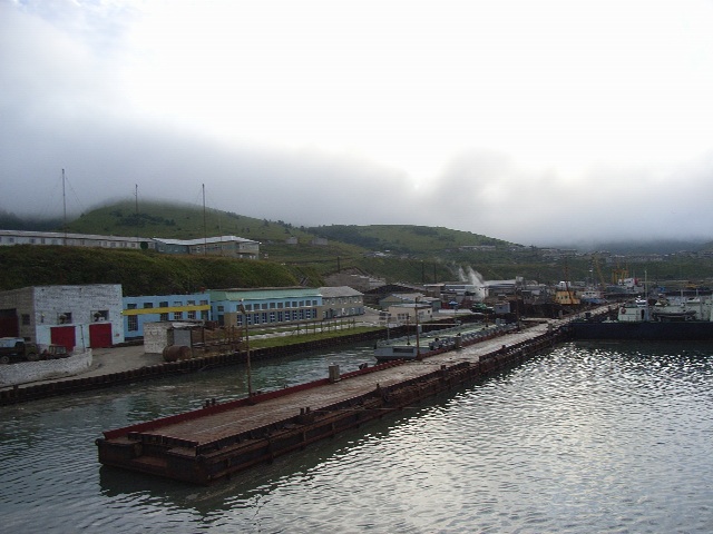 おととい夕方に大泊/コルサコフを出発してから、船旅ははや3日目を迎えた。もはやすっかりおなじみとなった船室で目が覚めたとき、すでに私たちの乗った船は、国後水道/エカチェリーナ海峡を通って色丹/シコタン島の中心地、斜古丹/マロクリリスクの港に到着していた。午前7時到着の予定であったが、予定よりずいぶん早く到着したようだ。