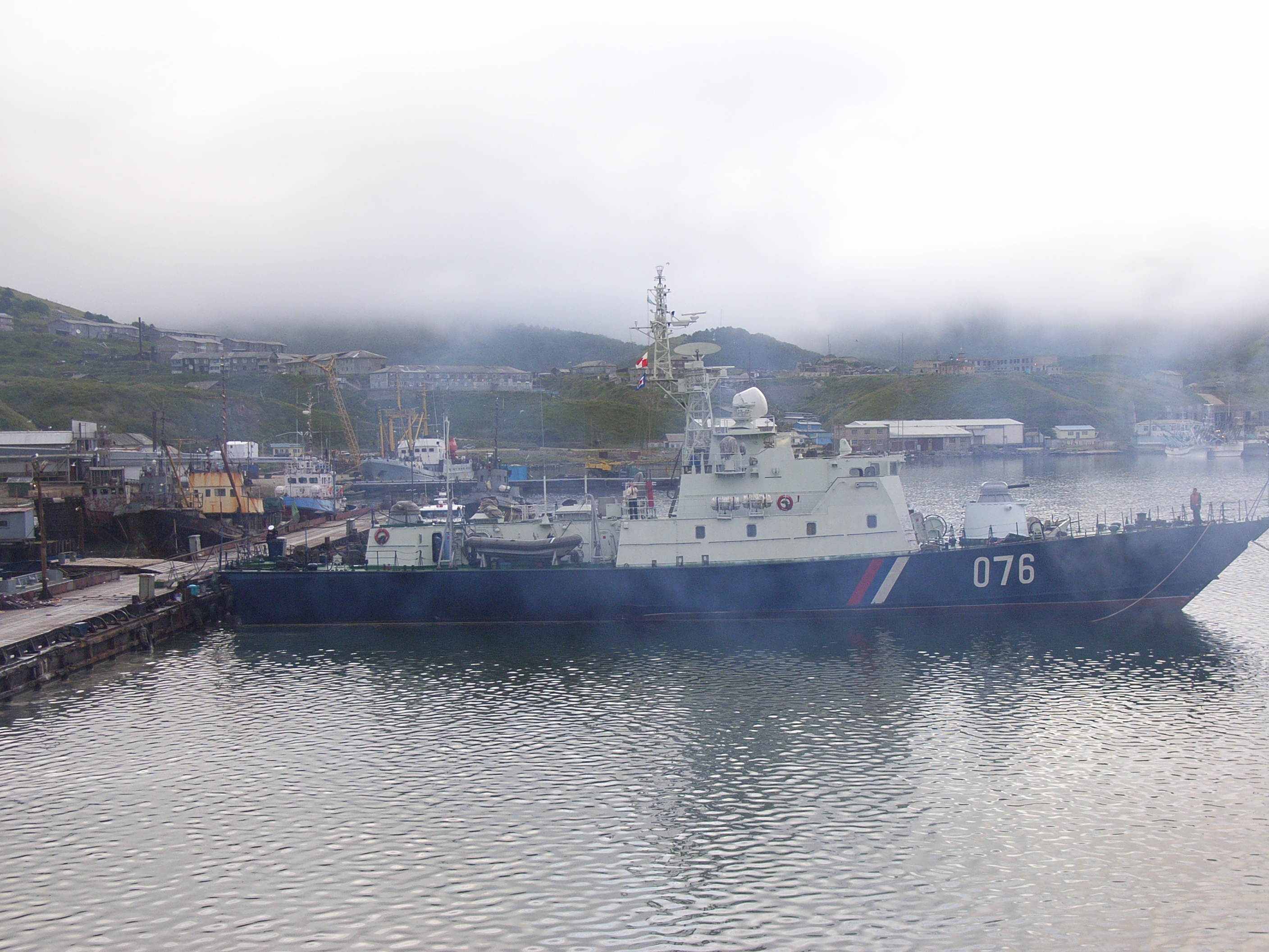 湾内には、国境警備隊の船が数隻停泊していた。レーダーを搭載している大型の船、灰色に塗装されていて数人しか乗船してなさそうなほど小さい船など、いろいろな種類の船がいた。