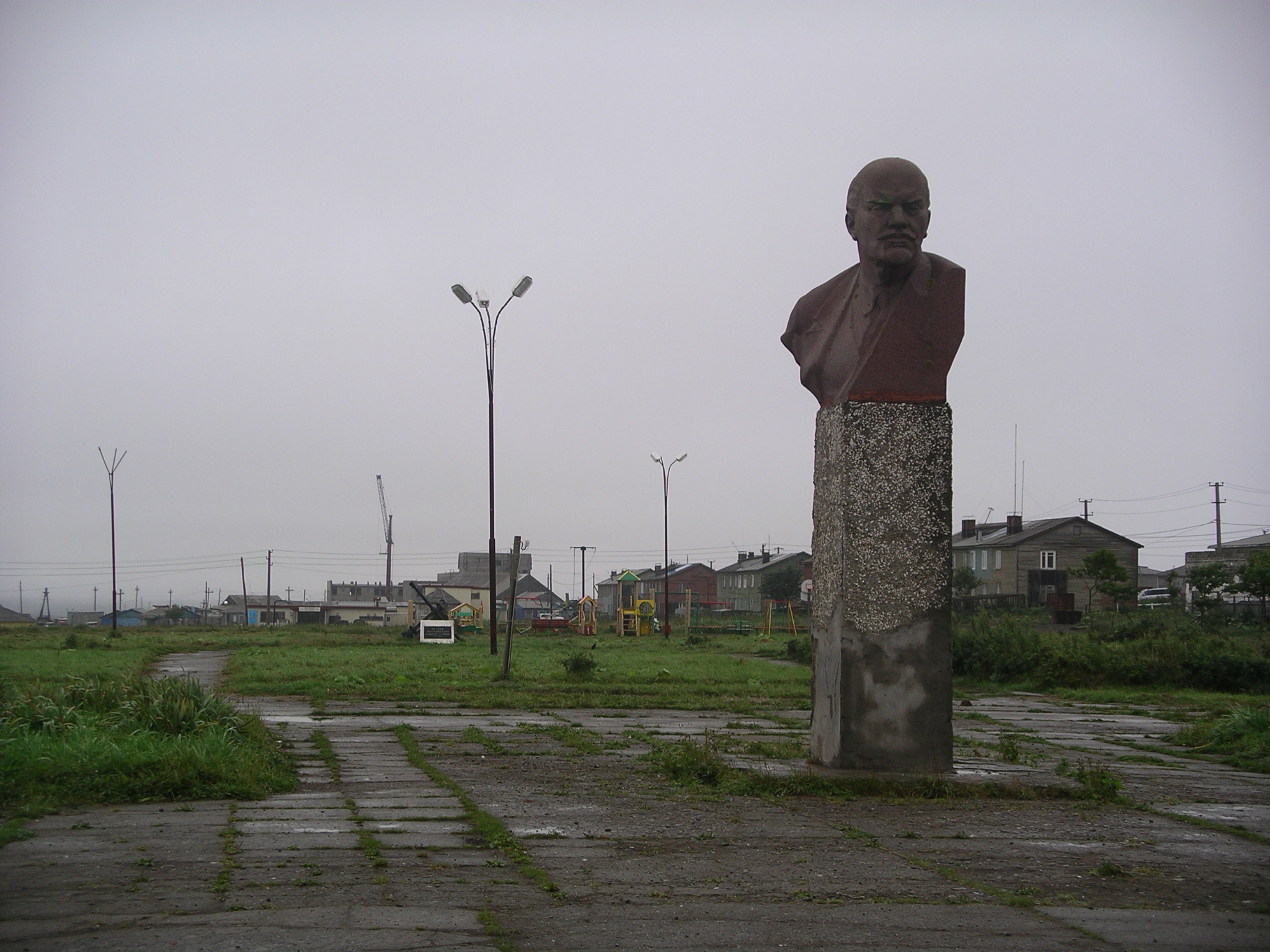 中心部には、レーニン像と広場が作られ、それに面して行政府の建物が建てられた。現在は、そのすぐ近くに、ロシア正教会もできている。なお、広場にあった行政府は、その後、地震のため使えなくなり、ムネオハウスのすぐ裏手に、明るく塗装された新しい行政府の建物がつくられている。