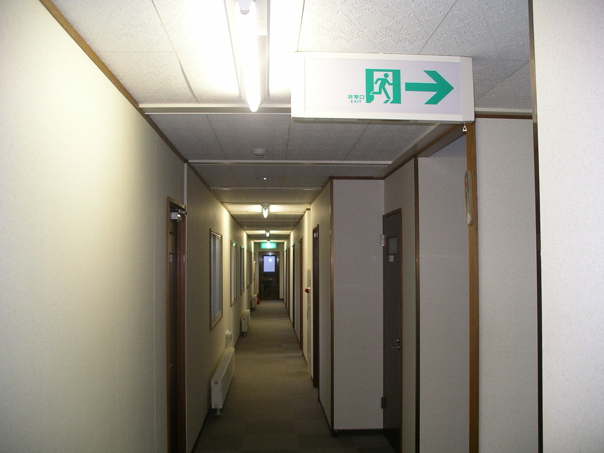 内部も、日本の宿泊施設そのものであった。電力費節約のためか蛍光灯がつけられてなかったが、日本にあるものとまったく同じ「非常口」の看板がぶら下がっている廊下を通り、私たちは荷物を置きに各自部屋に向かった。