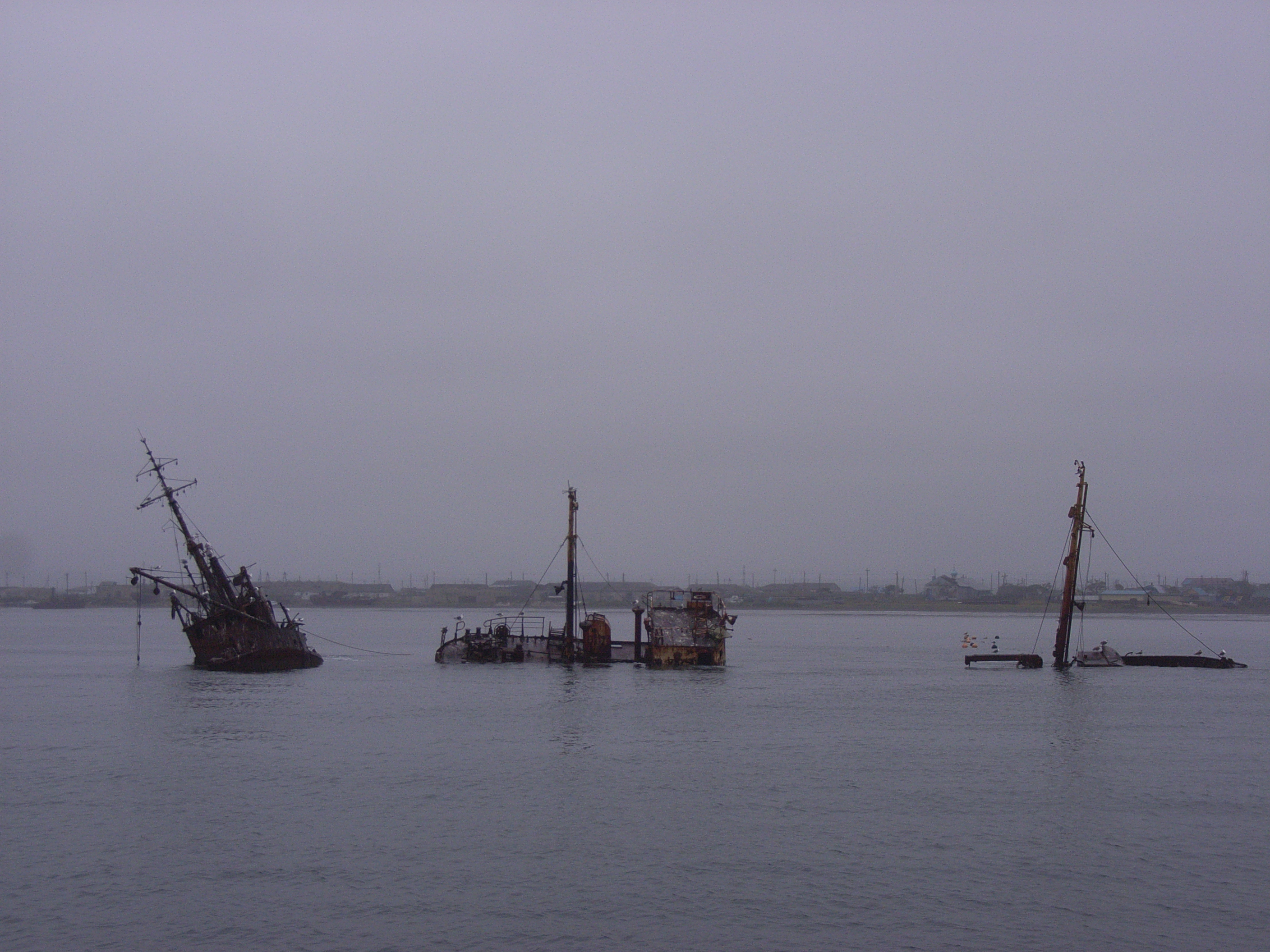 程なくして、艀船は古釜布/ユジノクリリスクの港に到着した。港のあちこちにすっかりさび付いたくず鉄が放置されている。見栄えもよくないし、環境に悪くないのだろうかと心配になる。