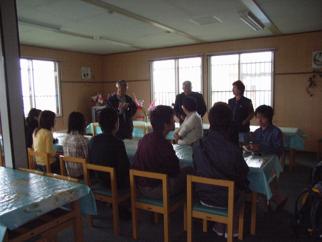 まずは食堂に集まり、現地を案内してくださる「クリル日本センター」のスタッフの方と顔合わせした。クリル日本センターは、ビザなし交流で日本へ行くロシア人を募集したり、民泊の手配をしたり、ビザなし交流日程・プログラムを作成したりして、日露交流がうまくいくようサポートしている組織である。