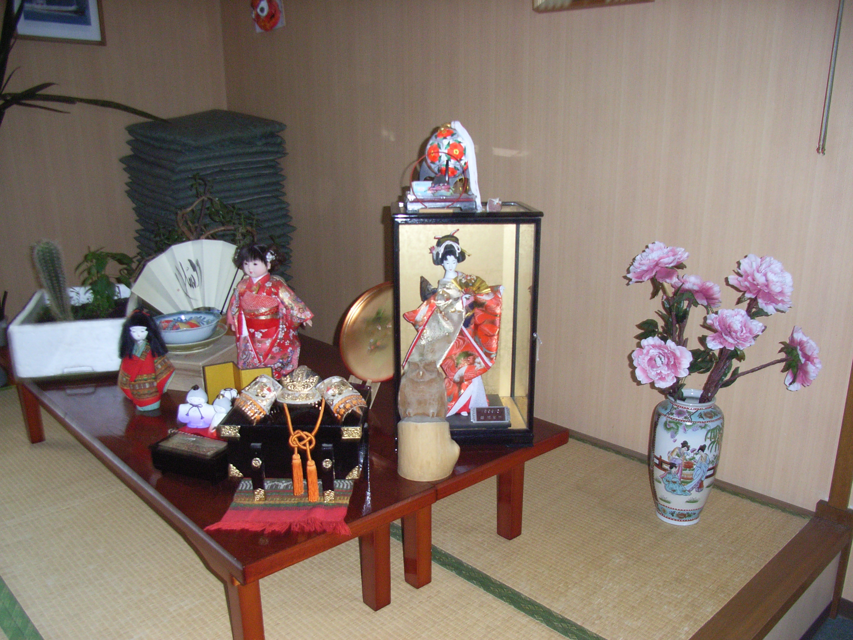 廊下には、日本のビザなし訪問団が国後/クナシル島民と交流している写真が多数飾られていた。また、食堂には、日本のビザなし訪問団がお土産に持ってきたと思われる、大量の日本人形や扇子が所狭しと飾られ、小上がりの畳敷きとなっている食堂の一角は、日本のお土産コーナーと化していた。