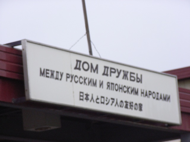 「日本人とロシア人の友好の家」は、鈴木宗男氏が外務省に対して権勢を振るっていた絶頂期、1999年秋の完成である。プレハブ2階建て、レーニン像が建つ広場から約200m、グネチコ通りに面して建っている。