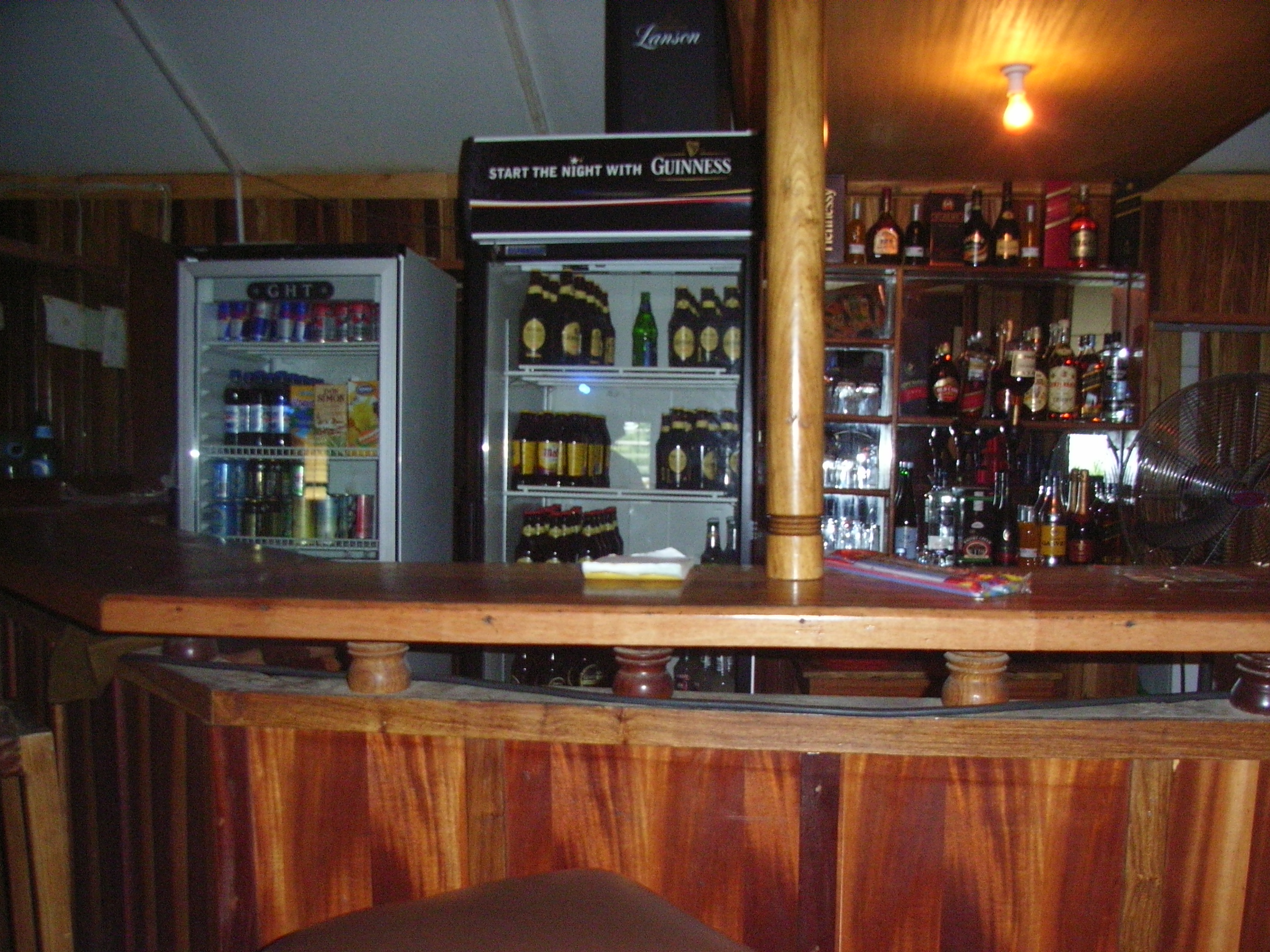屋内に入ると大きな広間があり、そこは普通のイギリス風のパブの作りである。壁に沿って胸の高さほどのカウンターがあり、高い椅子が置かれ、カウンターの奥にギネスのマークの入った冷蔵庫が置かれている。野外スペースには突き出た屋根の下にテーブルとベンチが置かれていて、ポップコーンや飲み物の露店があった。