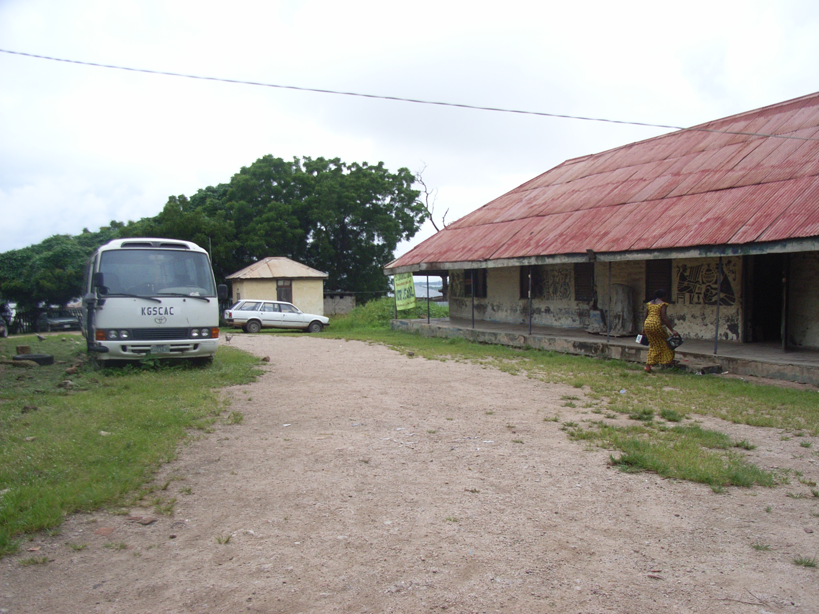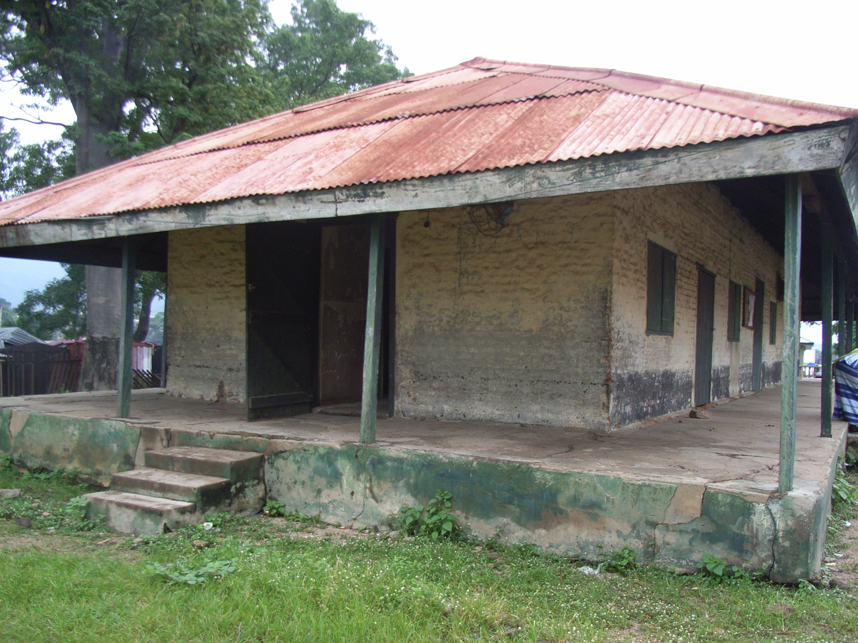 ここは、現在は病院ではなく、コギ(Kogi)州の文化センターになっているが、建物は植民地時代のままだった。1階建てで、三角型の屋根がかなり大きめに作ってあることで風通しが良い作りの建物が2棟あった。このほか、窓が木の板で密閉されている黄色い小さな小屋も残っていた。この小屋は遺体の保管に使われていたらしく、”matuary”と呼ばれていた。医療技術が未熟な当時は、風土病などで、たくさんの植民地イギリス人もここで命を落としたのであろう。