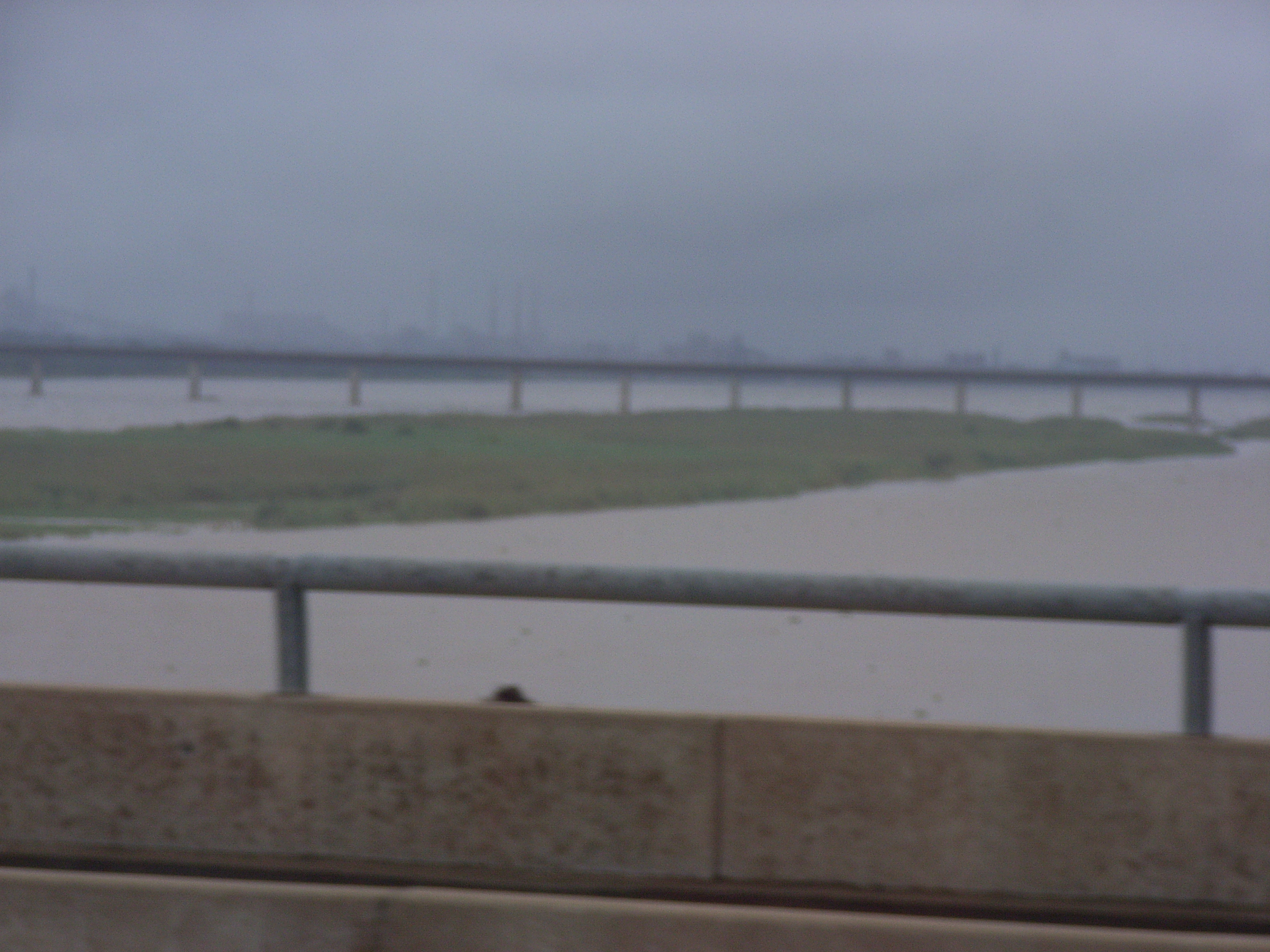 いよいよ橋をわたる。この橋は1980年代前半、製鉄所の計画と並行する形で、作られた。ドイツの研究機関Fraunhofer によれば、橋の長さは2890m、川の部分だけでも2090mとかなり長く、往復二車線となっている。ナイジェリアに浸透しているドイツのゼネコン、ユリウスベルガー社によって作られただけのことはあり、かなりしっかり作られている。