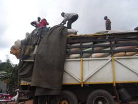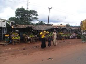 車は、オボロよりも下位の階層にあたる街を頻繁に通過する。そこには、頭の上に売り物を載せている人たちが数名から数十名単位で群がって、小さな商業中心になっている。ナイジェリアの農村部では、エヌグのような巨大都市の次の階層にオボロのような中心地、そしてオボロよりも更に下の階層には、このような街が無数にちらばっているのだ。これは、農民の人口密度の高さを示している。