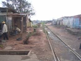街道に入る前、市内で鉄道のレールを見ることができた。一応踏切は存在したが、レールのまわりを囲うような柵は存在せず、レールから2mも離れていないようなところに小屋が建てられていた。この路線がどの程度使われているかは不明である。鉄道の周りには市場があり、食料やかばんなど生活用品を売っている露店で賑わっていた。