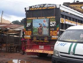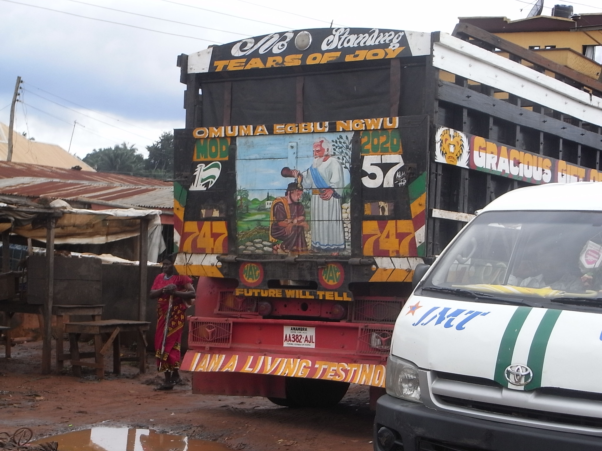 3時を過ぎた頃アビア(Abia)州に入った。キリスト教系の組織の看板が目立つ。多くは教会、または教会が経営するミッションスクールの看板である。”Come and be blessed” などと書いてあった。道路を走るトラックにも、キリスト教のデザインをあしらったトラックを見ることができた。日本でも見かける派手な装飾を行っている大型トラックに共通するものがある。