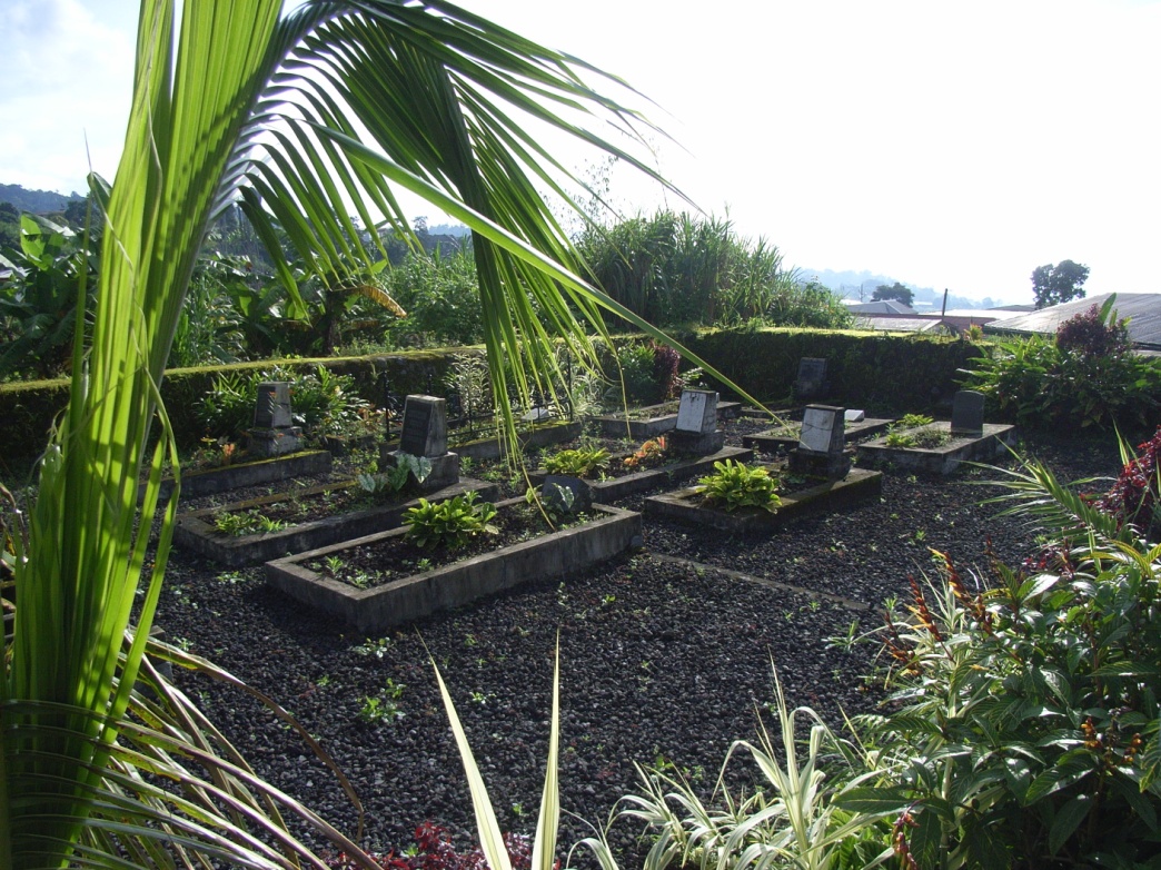 ドイツ人の墓地は、小石が敷き詰められよく整備されていて、10個程度の墓石が並んでいる。