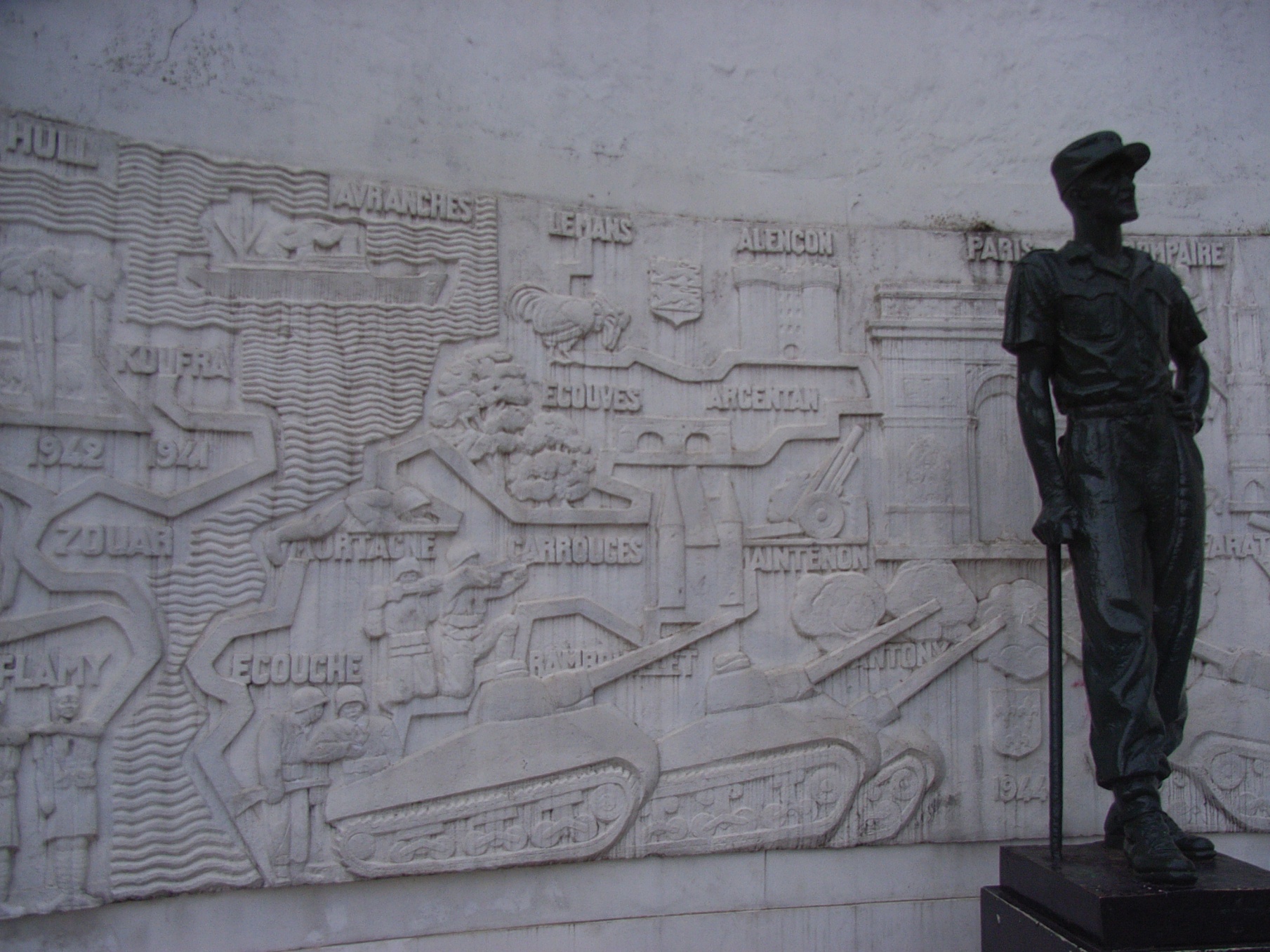 取り壊されることなく建っていた。また広場のすぐ脇には、フランス植民地の主要都市とその地方、兵士や戦闘機などの兵器・武器を描写する絵を刻んだ壁画と、