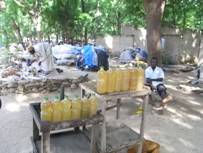 途中で、木の台に大きめのペットボトルが何本も置いてある店を見かけた。中の茶色の液体は、バイクの燃料か潤滑油のようだ。この商品しか扱っていない。若い男が暇そうに店番をしていた。