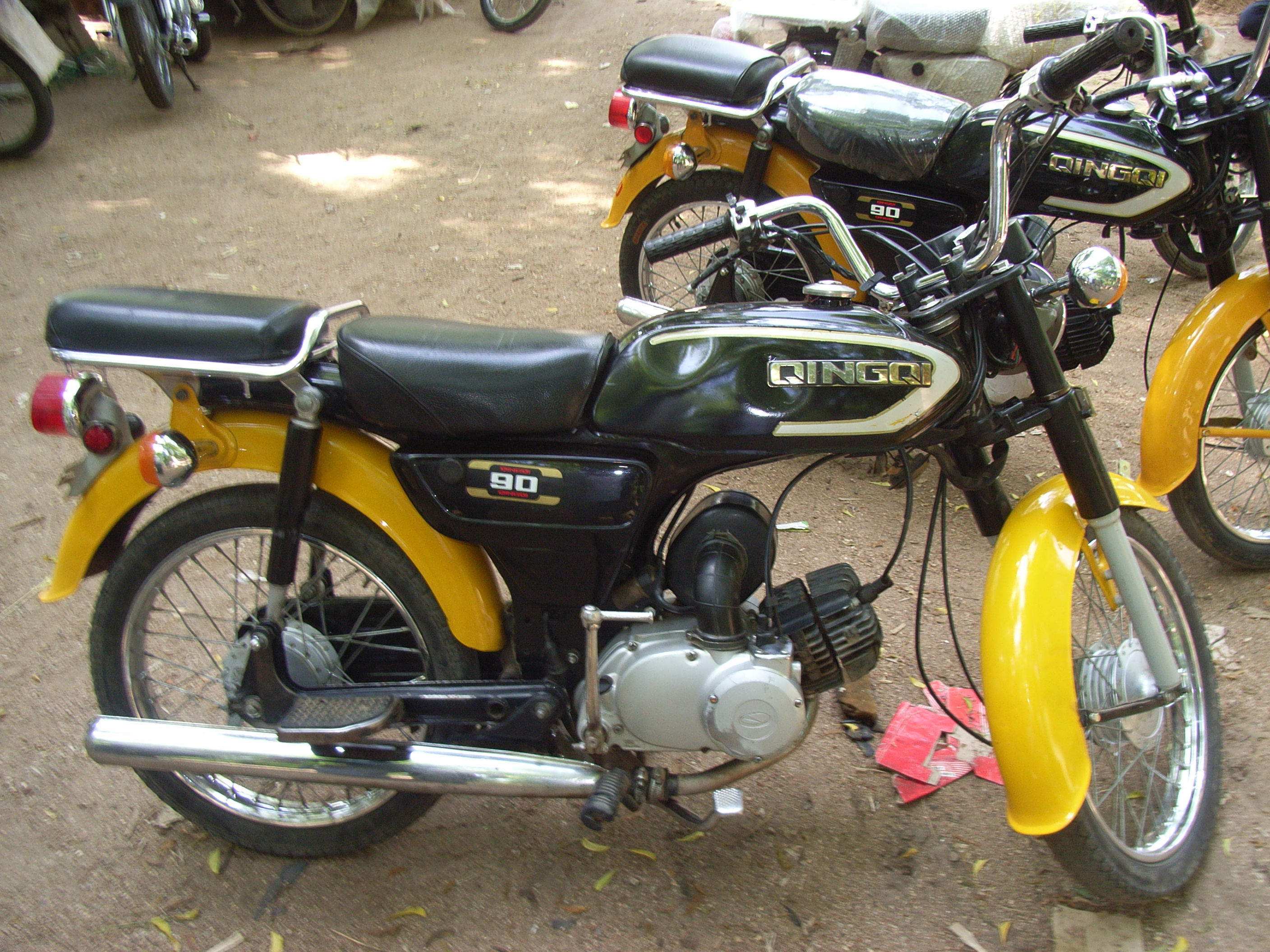 扱っているバイクの多くには、QINGQIと書かれていて、中国製であった。「QINGQI」とは、中国の?南??摩托?のブランドである。同社は国営企業依頼、40年ほどの歴史があり、日本のSUZUKIの技術を導入し、1985年には初めての中国産のバイク生産に成功している。最近は、ピンインのブランド名を英語読みした「クインキー」という名で日本にも輸入され、日本のバイクマニアの中にも愛好家がいるようである。HONDAやYAMAHAなどの日本製のバイクは見たところあまり並んでいなかった。これらのバイクは、ナイジェリアの隣国であるベナンのコトヌー港からやってくるという。