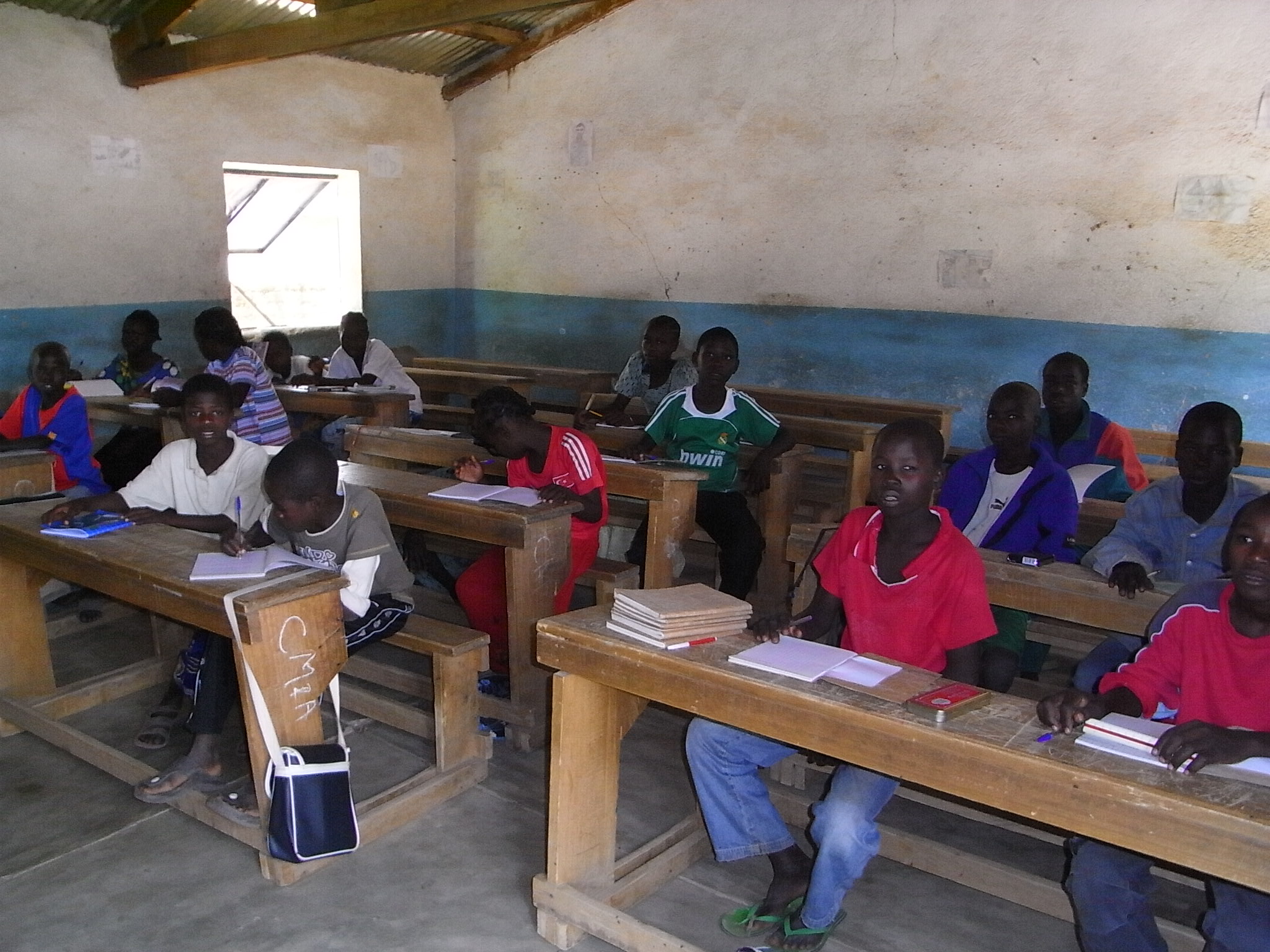 この学校は、イタリア人、ザイール人(現コンゴ民主共和国)の宣教師によって1961年に建設された。児童数は現在400人ほどである。授業料は年間7050CFAで、公立の学校が年間2千〜3千CFAであることを考えると、かなり割高である。通っている子供達は、途中の農村で穴の開いたTシャツを着ていた子供に比べると、皆こぎれいな格好をしているように思える。こうした農村にも階層が存在し、ここの学校に入れる子供はおそらく相対的に裕福な層の子供なのであろう。