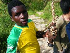 私たちが、ルムシキを去らねばならない時がきた。子供たちは、私たちの車の所までついてきたが、車の中までは入ってこなかった。その一人が、私たちの持っていたペンを必死に欲しがって、出発しようとする車の窓にしがみついた。筆箱の中にあったボールペンを一本、この子供に渡してあげると、子供はとても喜んでいた。それは、土産物を観光客に売ったときの表情とは違う、本当の嬉しさであるように感じた。ルムズのミッションスクールで見た、無邪気に一生懸命勉強していた子供たちの姿がふと頭をよぎった。