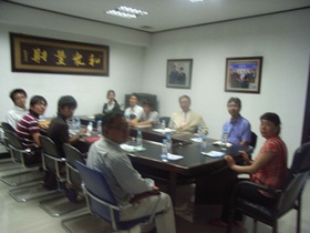 玄関を通ると、ガラスケースがあり、各国の飲料水製品と、星島有限公司の自社ブランド「星龍水」が展示してあった。私たちは2階にある会議室に通され、財務部科長の申玉華氏にお話を伺った。
