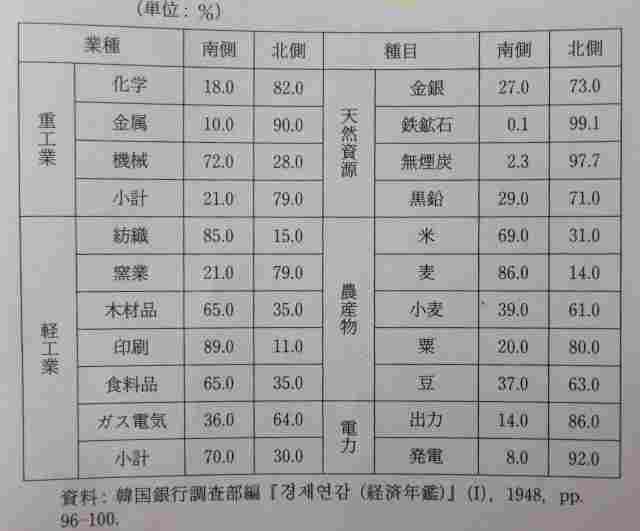 とはいえ、朝鮮半島すべてをソ連の戦勝権益とする了解は、ヤルタにおける米英ソの合意には存在しない。この合意を無視して朝鮮全土をソ連軍が直接に軍事占領すると、後々ソ連にとって、アメリカとの関係において厄介な政治的負担が生ずる。しかも、38度線が提案された8月15日までに、日本と開戦したソ連は、満州国境に近い清津や羅南など数ヶ所を攻撃していたに過ぎず、朝鮮全土をソ連が占領することは、戦況から判断してもかなり厳しいものであった(李著p. 52)。ここにアメリカから、「38度線」という提案が出された。これに従えば、ソ連が実際に軍事占領できた部分よりはるかに多くの領域をソ連の覇権下に確保できる。しかも、1945年時点で、朝鮮半島の南北別の産業・資源の分布を見ると、北側に重工業や天然資源、電力が集中している(趙承勲著p61表)。領域は単純に半分だとしても、軍事的・経済的にみれば、北のほうが「おいしい」半分であった。もともと戦勝権益を期待していなかった朝鮮半島の、しかもより魅力的な半分が、日本敗戦のどさくさに、アメリカの承認のもとソ連に転がり込んできたのであるから、スターリンにとっては過分の、十分満足な成果であったといえよう。